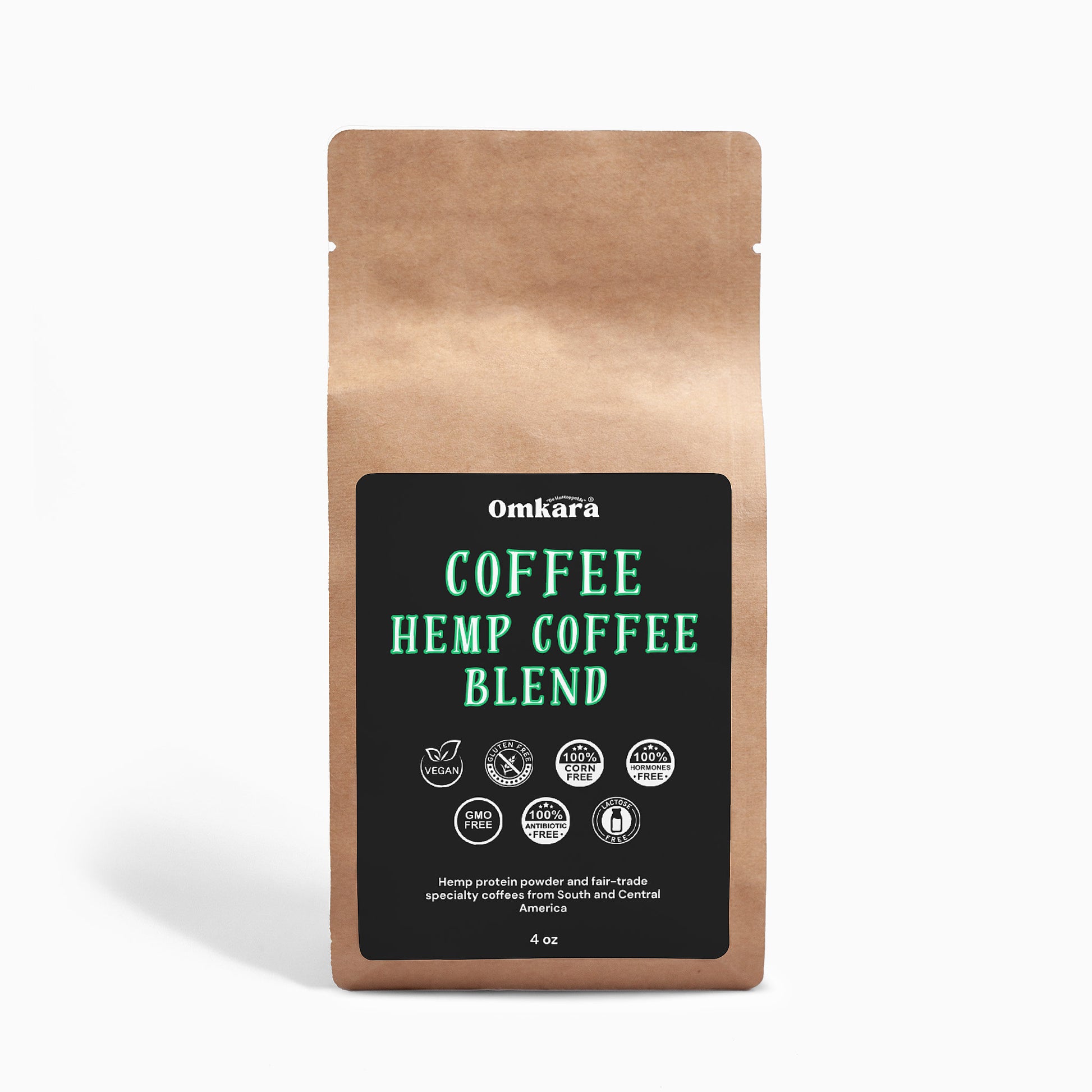 Our Hemp Coffee Blend - Medium Roast 4oz is expertly blended and roasted to perfection. We source our specialty coffees through a fair trade initiative from Central and South America and medium roast them for a beautifully rounded flavor.
